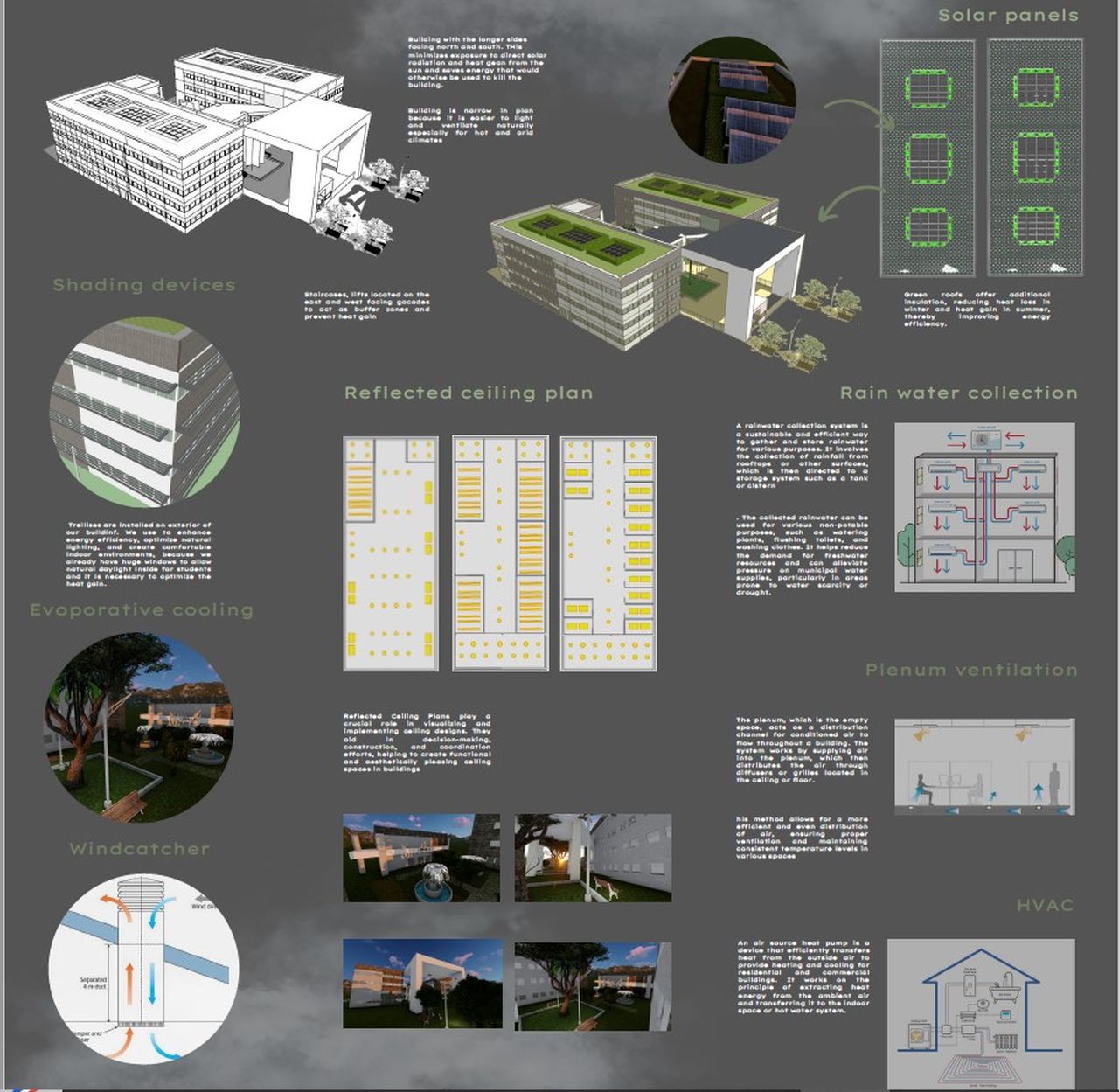 2023 bahar döneminde sürdürülebilirliğe özel önem verilerek Yapı Sistemleri II (ARCH211) dersi verilmiştir. Öğrenciler pasif ve aktif enerji sistemlerini dünyadaki çeşitli binaların tasarımına nasıl entegre edeceklerini öğrenmişlerdir. Farklı doğal ve yapay aydınlatma, ısıtma, soğutma ve havalandırma sistemlerini öğrendikten sonra öğrenciler belirli projelerin tasarımı üzerinde çalışacak ekiplere ayrılmıştır. Şantiyelerini bulmak için istedikleri iklim bölgesini seçmişlerdir. Mekanlar Bosna Hersek’ten Mostar ve Türkiye’den İstanbul dahil olmak üzere, Singapur ve Suriye'ye kadar uzanmaktaydı.